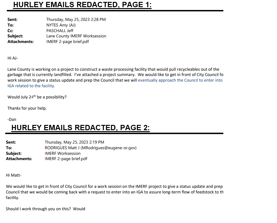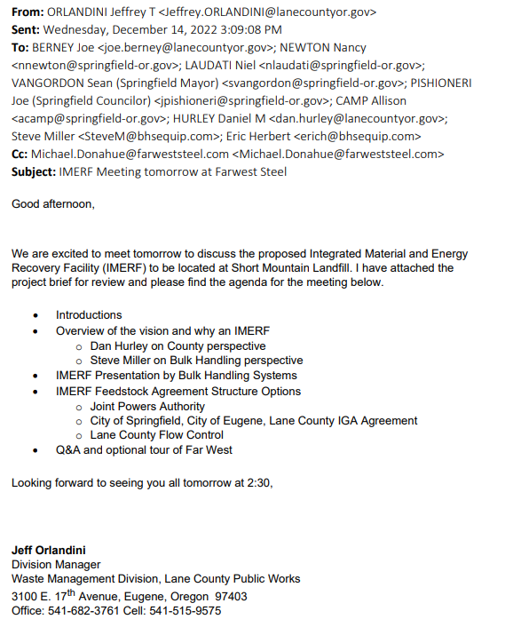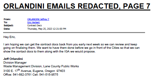 Staff’s efforts and intent to secure IGA’s, which they did not get or report back to the BOC about. This part was key to securing the tonnage Lane County needs to run CleanLane.